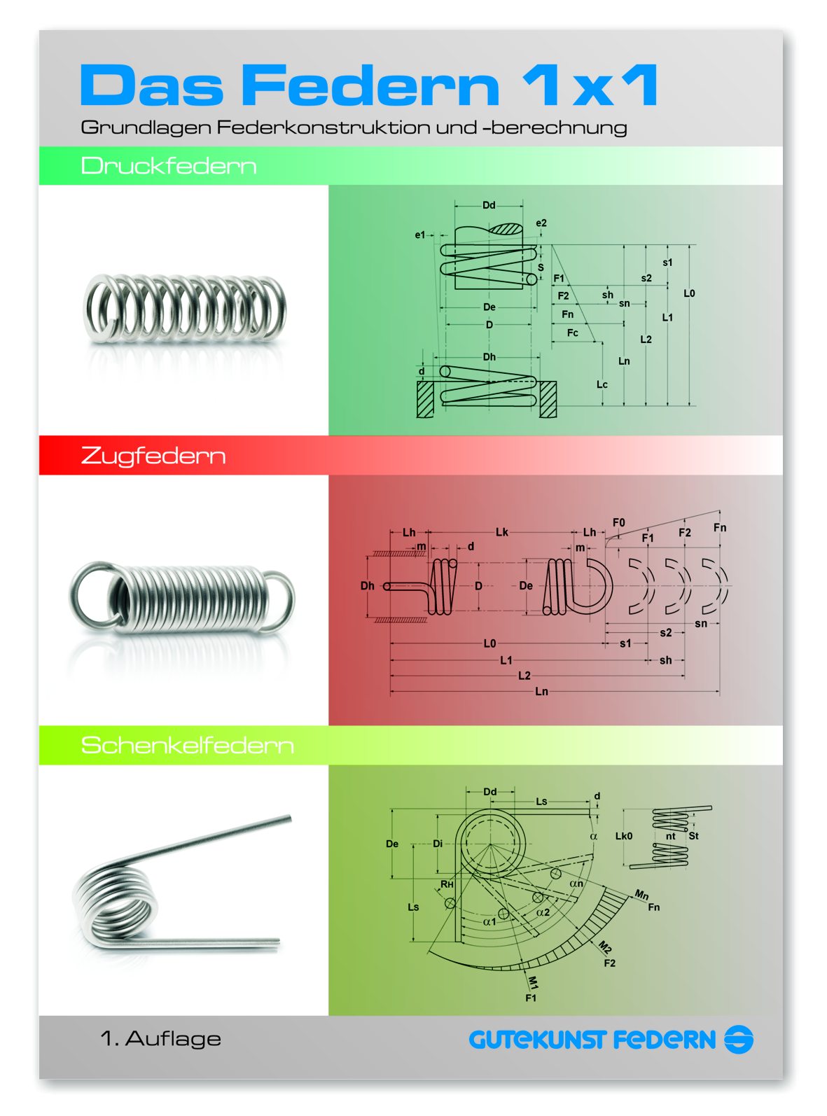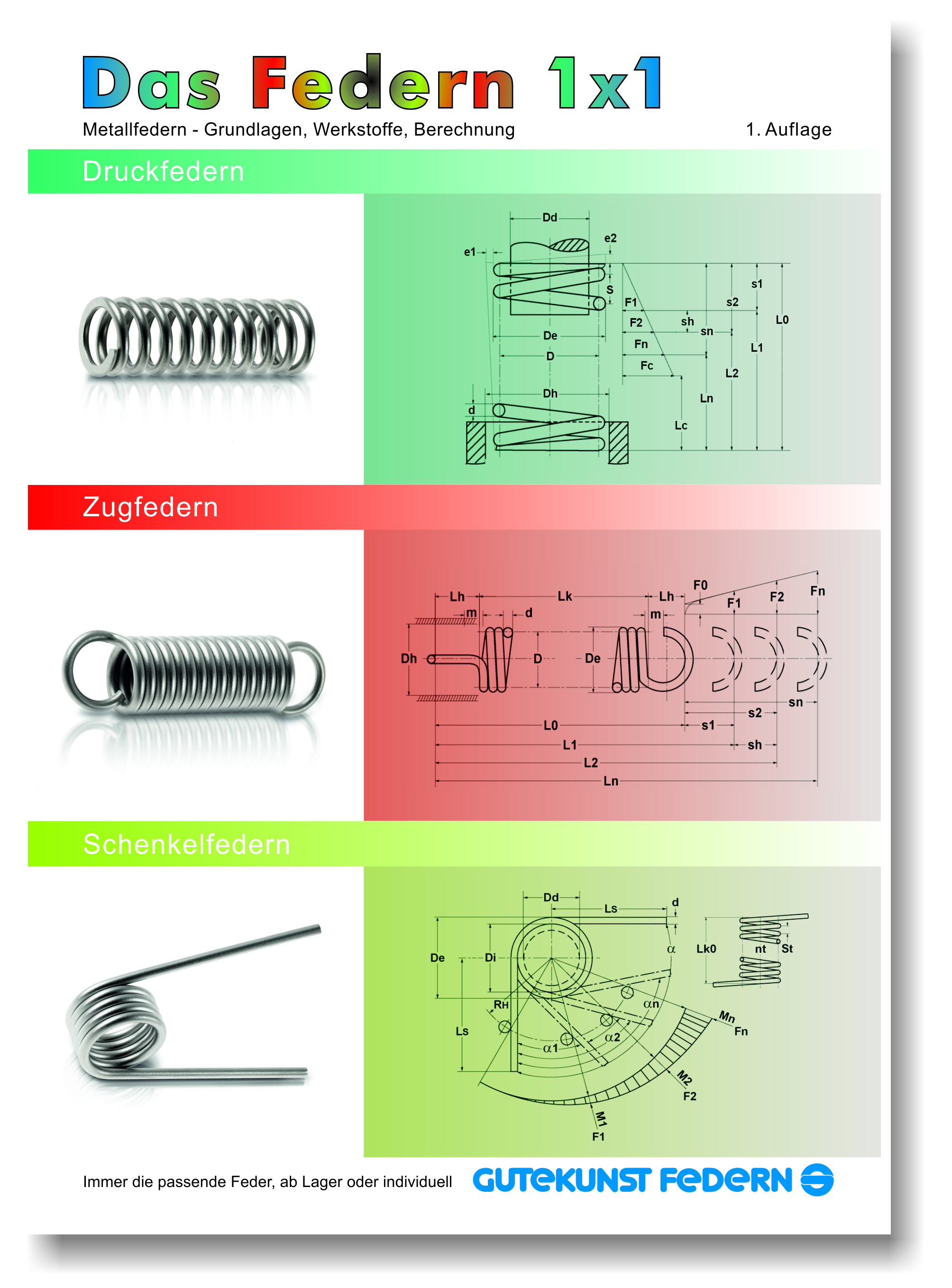 Das Federn 1x1Titelbild der 25-seitigen Federnbroschüre. Grundlagen der Federnberechnung und -konstruktion |