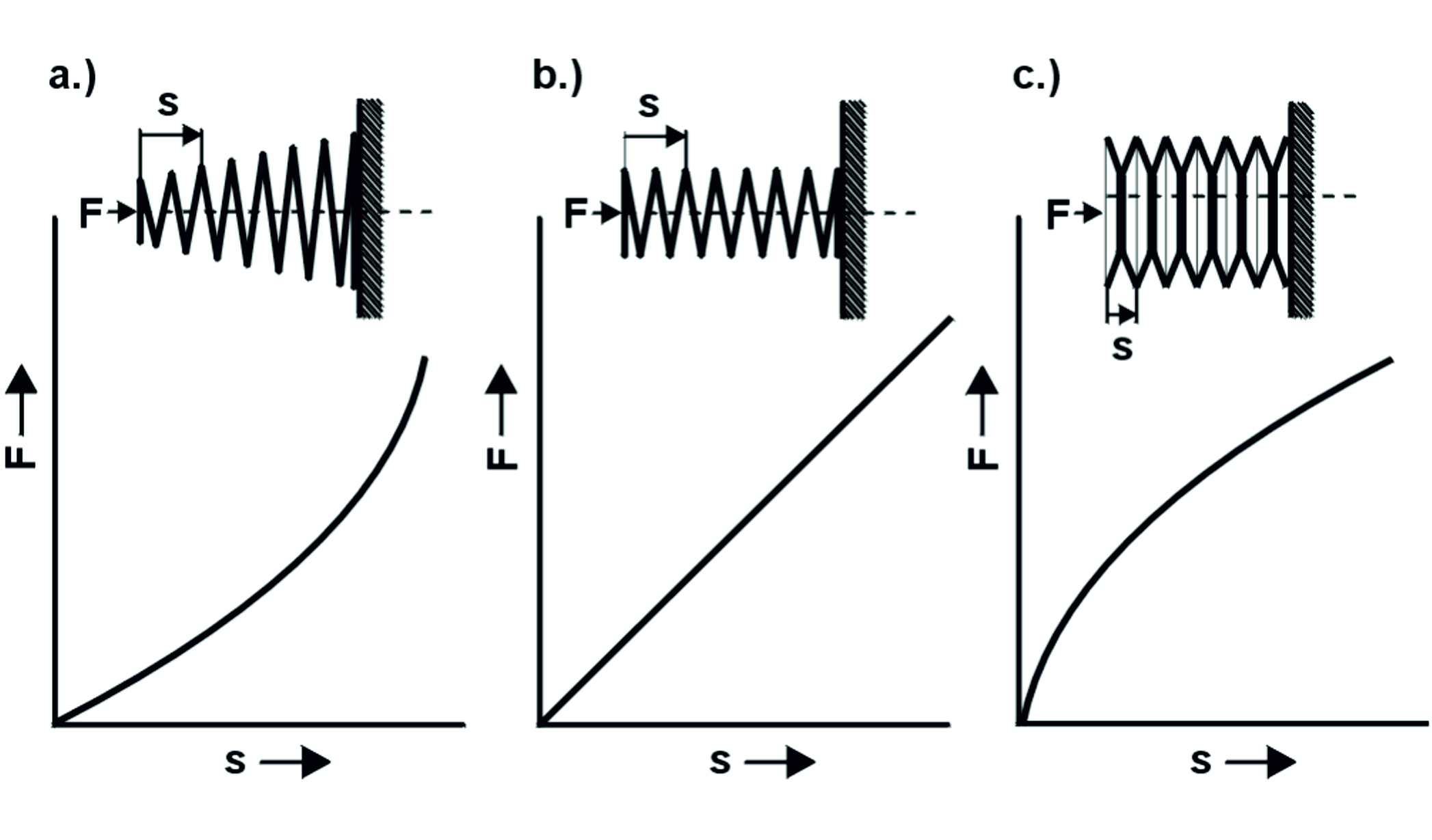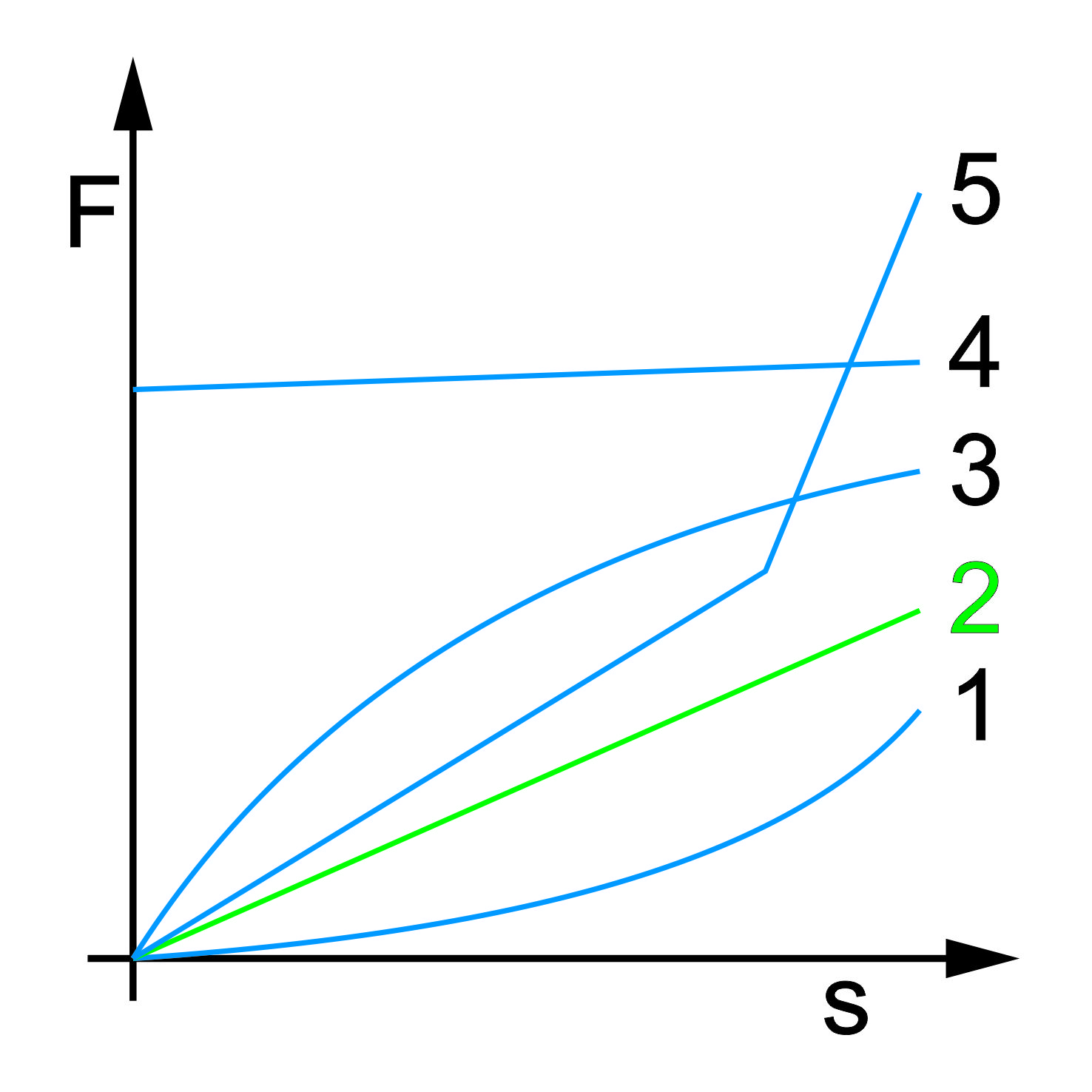 Bild 2Unterschiedliche Federkennlinien – lineare Federkennlinie „2“ am häufigsten |